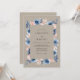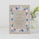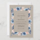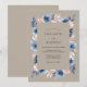 This design features a sophisticated palette of taupe, steel blue, and soft peach. Hand-painted watercolor anemones and delicate foliage create a romantic atmosphere. The earthy background provides a warm, rustic feel that is perfect for a bohemian-inspired event. Deep blue petals contrast beautifully with the muted neutral tones.
