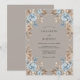 This design showcases a serene palette of dusty blue watercolor roses paired with warm taupe and mushroom tones. Elegant tan foliage and delicate botanical sprigs are arranged beautifully, creating a sophisticated and polished aesthetic. The muted color scheme evokes a graceful winter atmosphere ideal for a refined seasonal event.