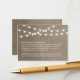 Chic modern summer wedding information insert card design with simple elegant glowing string lights hanging across the top and a classy mix of modern and calligraphy script fonts on a printed faux watercolor texture background. A simple and stylish preppy design, perfect for summer! Click the CUSTOMIZE IT button to customize fonts, move text around and create your own unique one-of-a-kind invitation design.