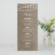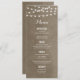 Chic modern summer wedding menu card design with simple elegant glowing string lights hanging across the top and a classy mix of modern and calligraphy script fonts on a printed faux watercolor texture background. A simple and stylish preppy design, perfect for summer! Click the CUSTOMIZE IT button to customize fonts, move text around and create your own unique one-of-a-kind invitation design.