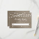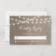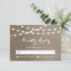 Chic modern summer wedding RSVP reply card design with simple elegant glowing string lights hanging across the top and a classy mix of modern and calligraphy script fonts on a printed faux watercolor texture background. A simple and stylish preppy design, perfect for summer! Click the CUSTOMIZE IT button to customize fonts, move text around and create your own unique one-of-a-kind invitation design.