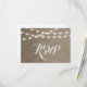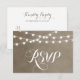 Chic modern summer wedding RSVP reply card design with simple elegant glowing string lights hanging across the top and a classy mix of modern and calligraphy script fonts on a printed faux watercolor texture background. A simple and stylish preppy design, perfect for summer! Click the CUSTOMIZE IT button to customize fonts, move text around and create your own unique one-of-a-kind invitation design.