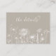 Modern, refined, and effortlessly elegant, this taupe wildflower details card is designed to complete your wedding invitation suite with a sophisticated and understated touch. Featuring delicate hand-drawn botanical florals in a minimalist line art style, this design blends natural beauty with a contemporary neutral palette.