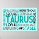 Featuring words that describe the person born under the astrological sign of Taurus in the Zodiac.