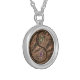 I chose gold plated so that the metal would not react with my skin oils and perspiration. But, I changed the necklace from the gold plated one to a sterling silver. My skin cells will tarnish the silver. But it will not look as bad if some portion of the gold plated necklace somehow became compromised. Zazzle did a find job turning the picture into a pendant for me. As you can see, the colors and the printing of the final product, match the preview. The picture I took is not very clear. But I am pleased with the product I received.