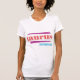 My overall review is that the T-shirt is nice, it fits true to size however the font is significantly smaller than advertised and you can't read it. The printing is unreadable and there is a strain to read it. It does not look like the advertised product. Maybe the shirt color is darker or a larger more visible font should have been used. Photos with and without flash and font is barely legible.