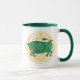 Taurus sign of the zodiac in green and yellow on a two-tone coffee mug.