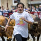 Taurus the Bull, sitting on a picnic mat, rose in it's mouth and emeralds round it's neck. living like a star.