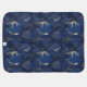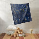 Magical mystical Taurus astrological milestone baby blanket in gold and midnight blue. Gender neutral for baby wizards!