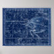 Taurus zodiac sign vintage graphic illustration with stars and constellations on a dark blue background.