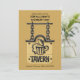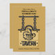 A great "man's" invitation featuring a tavern sign with a mug of brew. The background is dark gold and the sign a lighter gold and it hangs from a thick black chain. Perfect for a masculine celebration.
