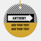 Lightweight, smooth, pure white ornament with nice sheen. Perfect size to be seen from across the room ... and to attract closer inspection! Price was great for ordering enough for the whole family! Clear, bold black design just as requested. Matches the order exactly. Just so nice!