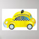 Cute cartoon illustration of a New York City yellow taxi cab. Image available on various gifts and products.