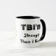 Raising brain injury and TBI awareness with stickers, buttons, t-shirts, ball caps and more. This coffee mug says, "TBI'm Stronger Than I Knew" which pretty much describes everyone who has experienced a traumatic or anoxic brain injury. Matching t-shirt.