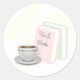 Tea and books bridal shower. Featuring pink and green books, and a cup of tea