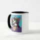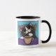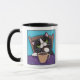 Fun whimsical mug featuring a black cat having a tea break. Original artwork: acrylic on canvas © 2008 Lisa Marie Robinson