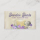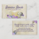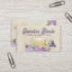 Tea brewing mesh ball with pretty but plain tea cup or teacup, roses and violets flowers business card for tea sellers, lovely personal calling card, or punch a hole in the top and use them for all-occasion gift tags. Blues, purples, and pinks with a touch of green leaves and taupe in this watercolor style digital illustration.