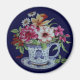 A beautiful tea cup with a blue decoration, that is being used as a flowers pot makes a nice magnet for a lovely little gift. You may change the background colour if you wish.