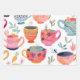This cute set of wrapping sheets features an illustration of tea cups and leaves and two solid colours taken from the illustration.