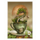 This whimsical dragon is part of a series of little dragons that would live in a garden. Hiding among tea leaves this dragon has taken on some of the colors and appearances. Finding a tea cup home and a bee adds a little honey to the tea.