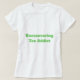 The funny quote, "Unrecovering Tea Addict," on the white t-shirt was inspired by a similar quote we created based on comments made by a good friend who is an attorney.