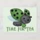 Cute ladybug with green wings drinking tea. Text is customizable.