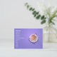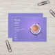 Business card with my artwork of a teacup and spoon on a saucer with little red flowers on a purple background.