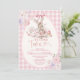 Tea For Two Easter Bunny Pink Gingham 2nd Birthday Invitation