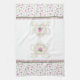 Illustration of an old teapot with a wild rose decal and rosebuds circling the lid. The matching teacups are also decorated with the rosebud trim. A row of the rosebud trim borders the teapot images top and bottom. The ends of the towel are decorated with a floral wallpaper design with a green and pink border. Matching bone china mug, plate, and teapot are also available. Click on Personalize if you wish to add text on the towel. Choose a font style, size, and color.