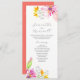 These tea length wedding program templates showcase bold and colorful watercolor flowers in vibrant shades of pink and orange, accented with soft lavender hues. Designed for botanical garden and wildflower-themed celebrations, this unique tea length wedding program adds a touch of natural elegance to your big day.