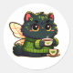 A cute little fairy cat in cozy sweater drinking his favourite cup of tea.