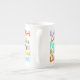 A bone China mug featuring Natural Spices & Herbs used for making tea, in pretty pastels, each word a different font.