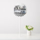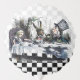 Medium air-filled balloon with a vintage Alice in Wonderland image, on both sides, of the Mad Hatter’s tea party with Alice, the March Hare and Dormouse on a gray and white and black and white checkerboard. See the entire Wonderland Balloon collection in the DÉCOR | Balloons section.