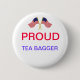 Proudly display your affiliation with the Tea Party, and turn their negative rhetoric into a positive. Button contains the phrase "Proud Tea Bagger" with 2 American flags flown above it.