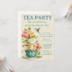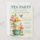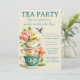Whimsical tea party card with stacked teacups, hummingbird, and blooming florals. Sweetly charming!