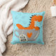 Tea Rex Dinosaur Teal Orange Kids Room Decor Throw Pillow