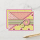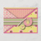Retro kitchen of mix and match prints of ditzies and whimiscal defines this letter-like card design featuring ribbons and teapot and teacup medallions.
