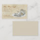 This business card features an elegant tea set with tea pot and two steaming beverage cups on marble look background.