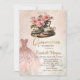 Tea Set Rose Gold Dress Confetti Quinceañera Invitation