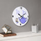 Stylish kitchen wall clock, with graphics of a tea bag and a iris blue and white polka dot tea pot. Tea Time in whimsical iris blue text, at the top is fully customizable to read what you want. Numbers are done in black. Cute looking clock that will add a great accent to your kitchen.