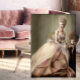 Tea Time, Mary Antoinette Esthetics, Woman Sitting, French Beauty, Digital Mixed Media Art for Furniture Decoupage