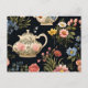 Tea time, quaint vintage illustration complete with flowered tea pots and spring flowers.