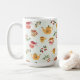Cute seamless pattern of teapots, teacups, mugs of tea, and fruit jam jars.