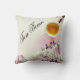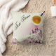 A charming portrait of an inviting cup of tea next to a bundle of small violet and white flowers on a subtle light violet and white backdrop with the caption "Tea time". Perfect for a cozy, tea room sofa.