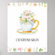 Custom Text sign featuring an illustration of wildflowers, greenery and teacup. Customize with your own text if desired.