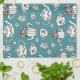 Tea towel with hand-drawn tea elements, repeated patterns. Created with Adobe Illustrator CC.