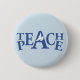 Teach peace text and dove of peace graphic pin button badge. Perfect for those who want to teach peace. Background color can be changed to your own choice currently light blue. Designed by www.mylittleeden.com