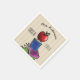 These napkins feature a teacher's name and class year. Design has a red apple on top of a colorful stack of books and a neutral tan striped background.