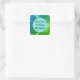 The background of this teacher appreciation sticker features a swirled green and blue abstract pattern that appears marbled. A solid light blue circle is centered on this square sticker and provides the background for your words of appreciation. "Thank You For Being My Teacher" can easily be customized to suit your needs.