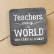 "Teachers change the world one child at a time" thoughtful white typography script quote on blackboard background. It could make a nice thank you gift to your best teacher on teacher appreciation day.